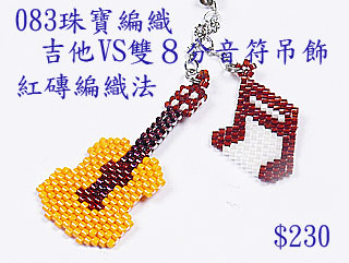 編織串珠材料包~083吉他VS雙8分音符吊飾-紅磚編織法