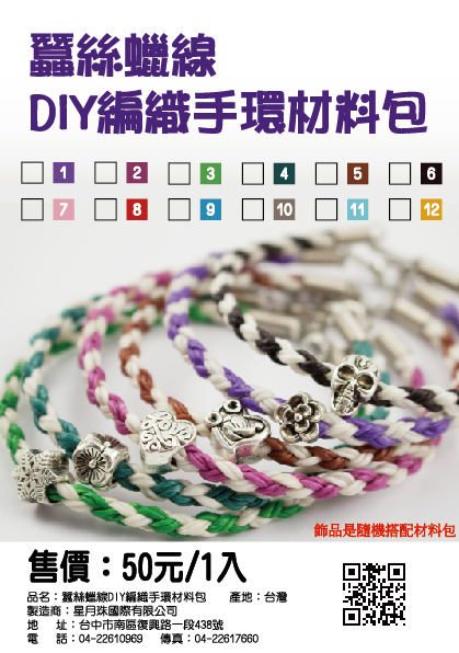 內容物: 彩色說明書, 蠶絲蠟線,圓線管 飾品隨機出貨