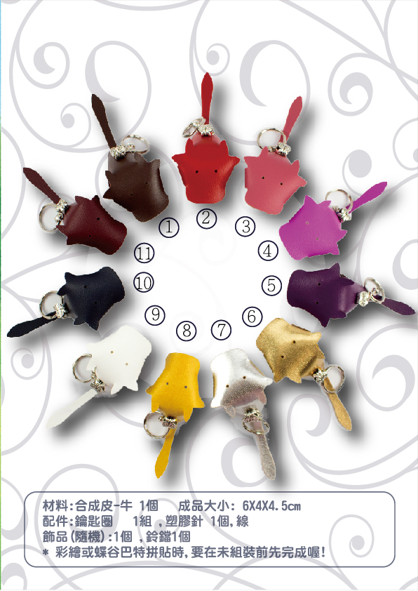 內容物: 彩色說明書,合成皮, 塑膠針,線,鈴鐺,飾品(隨機)