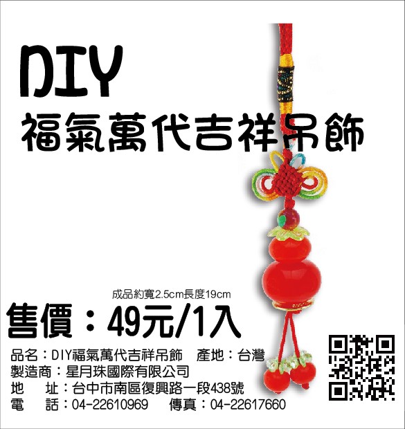 DIY福氣萬代吉祥吊飾 $49/1入