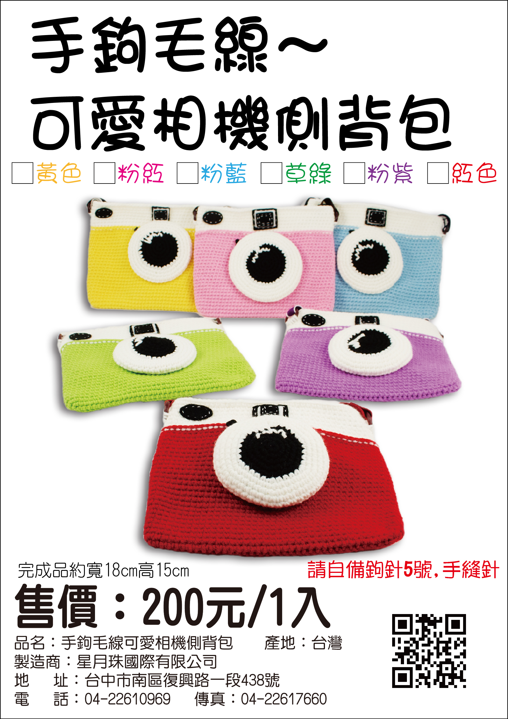 手鉤毛線-可愛相機側背包-粉紅(C0041) → 其他顏色或款式