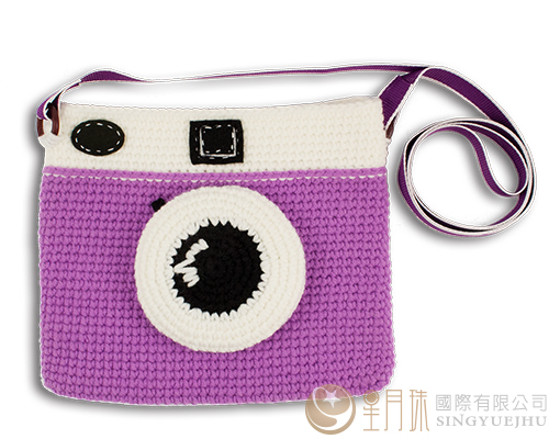 手鉤毛線-可愛相機側背包-粉紫(C0041)