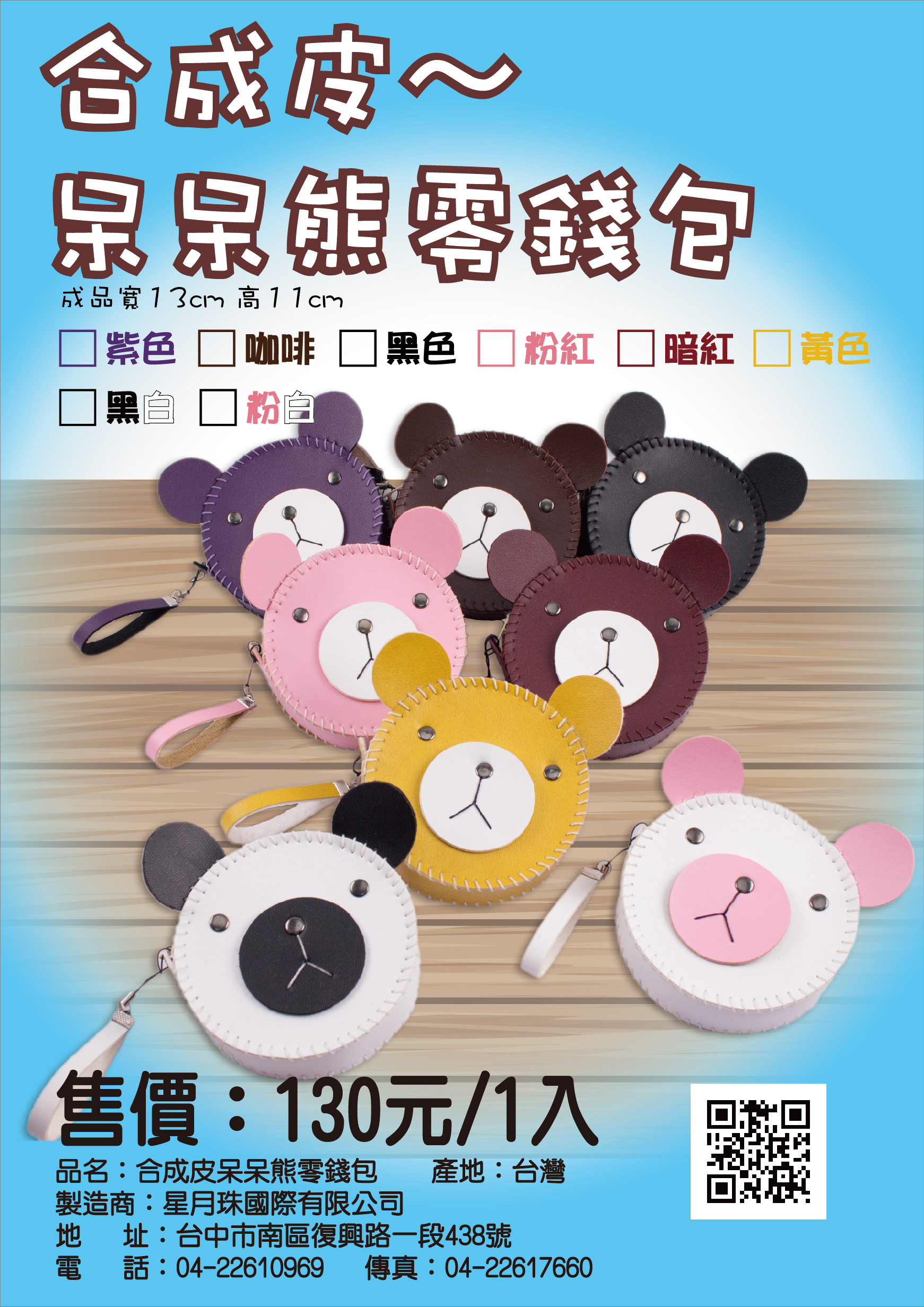 合成皮呆呆熊零錢包-紫色(B007) →