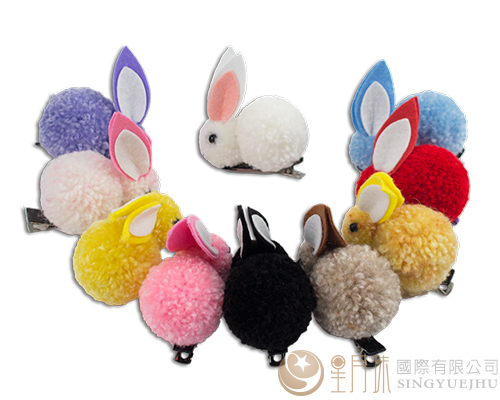 DIY毛线球兔兔发饰材料包-黄+橘(C0057)