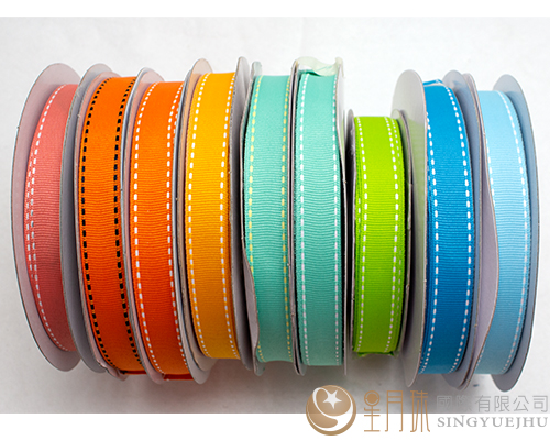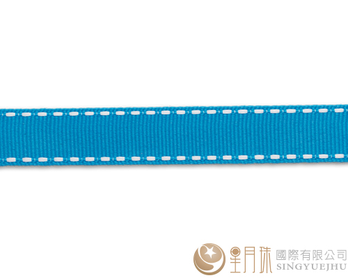 湖水藍+白虛線-羅紋緞帶-5分-75尺