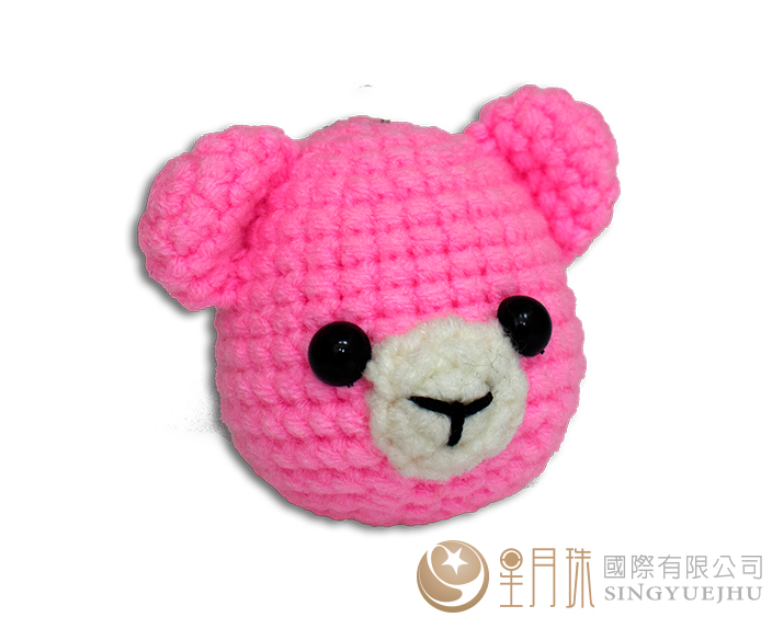 手鉤-可愛小熊頭鎖圈-粉(C0013)