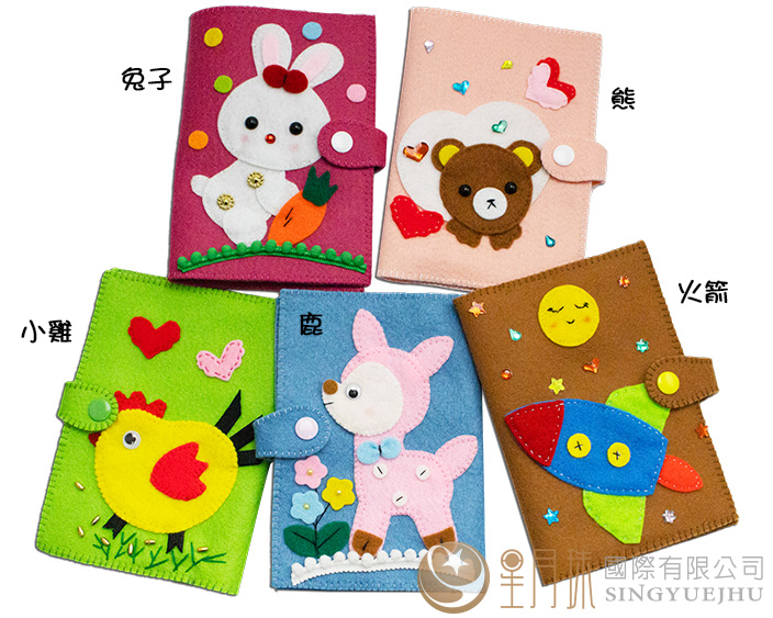 內附彩色說明書、不織布、壓釦、縫線、半面珠、繡線