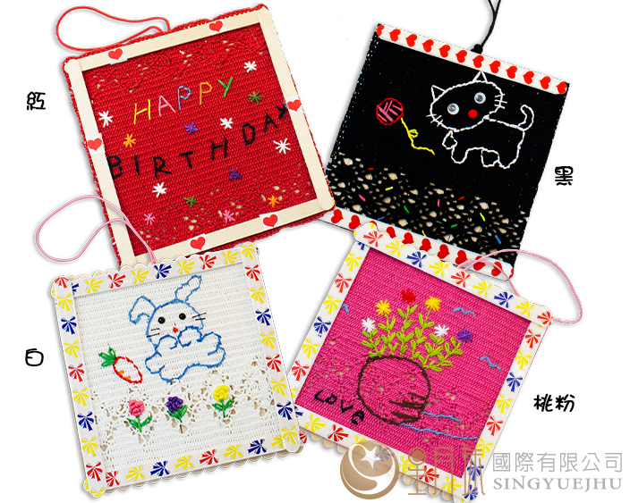 內容物:蕾絲布、繡線、說明書、針、鬆緊線、冰棒棍
